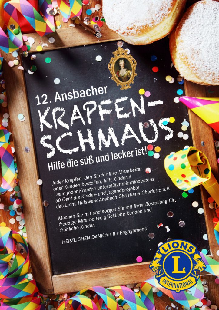 Unterstützen Sie mit je 50 Cent pro Krapfen die Kinder- und Jugendprojekte des Lions Hilfswerks Ansbach Christiane Charlotte e.V. .